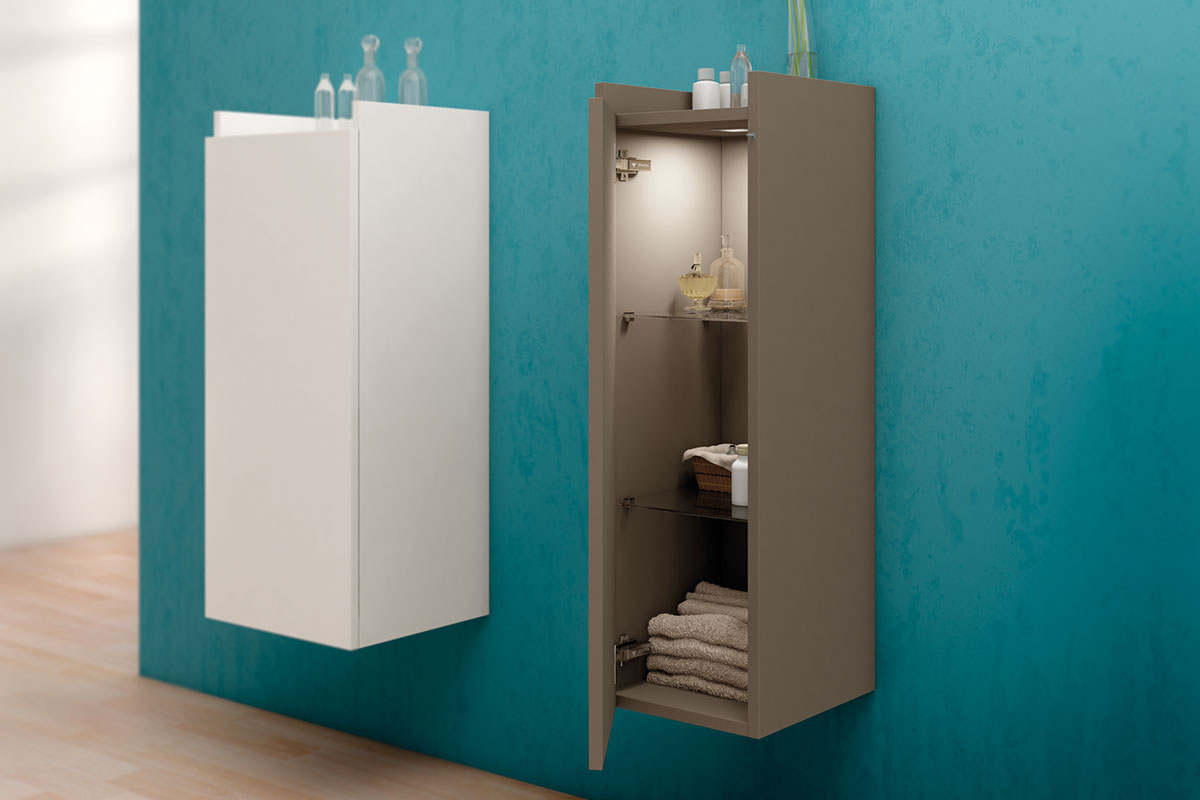 Mueble de baño de colgar con puerta y estantes en cristal, diferentes acabados a elegir